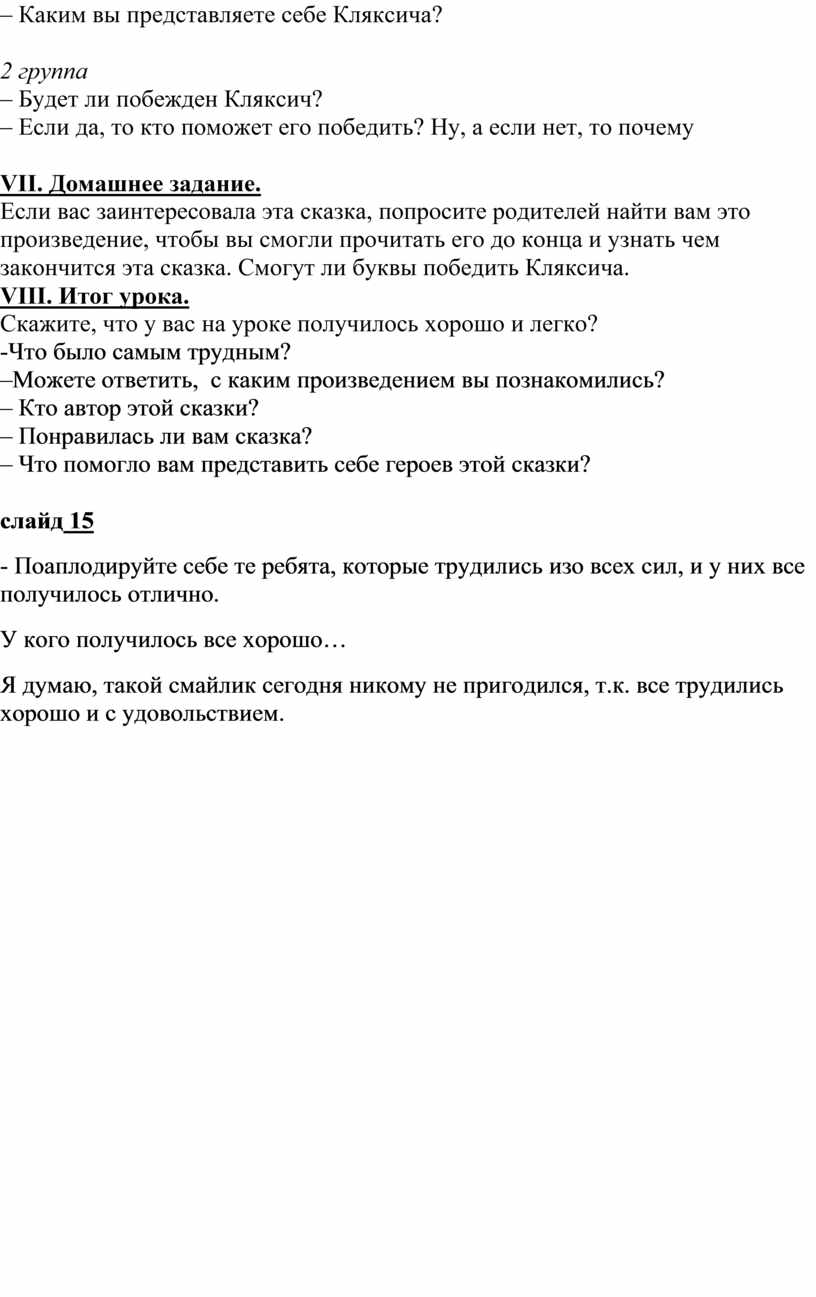Если вас заинтересовала эта сказка, попросите родителей найти вам это произведение, чтобы вы смогли прочитать его до конца и узнать чем закончится эта сказка. Смогут ли буквы победить Кляксича.