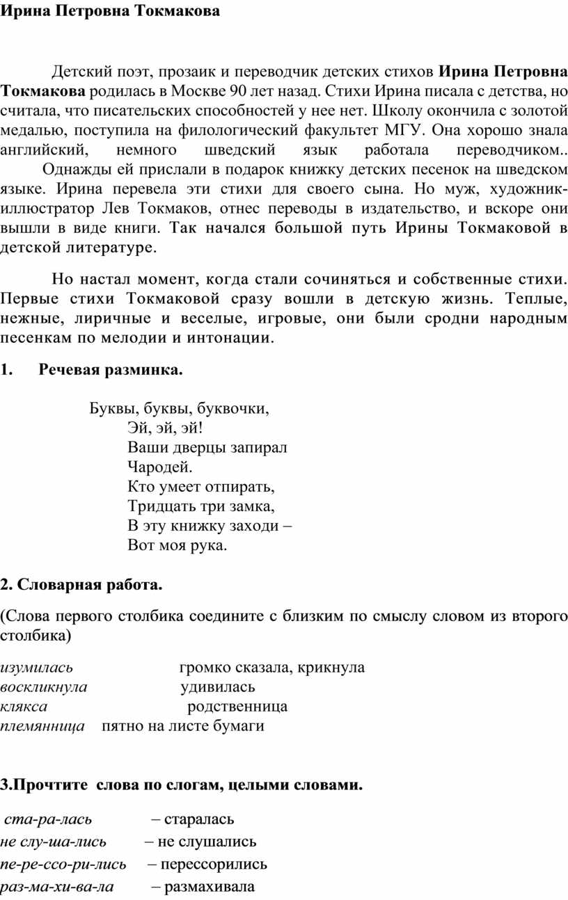 -Кто из вас читал произведения И. Токмаковой и что вы о ней знаете?(учитель рассказывает об авторе и демонстрирует книги писательницы)