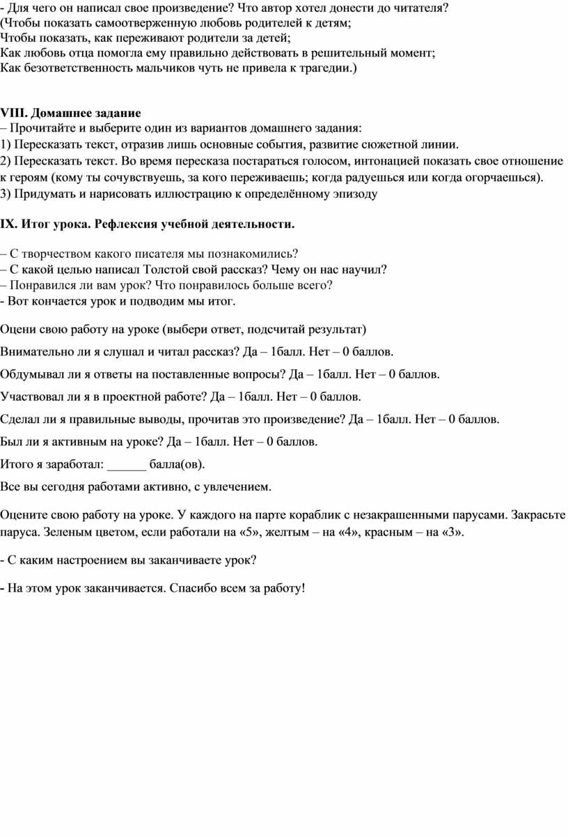 – С какой целью написал Толстой свой рассказ? Чему он нас научил?