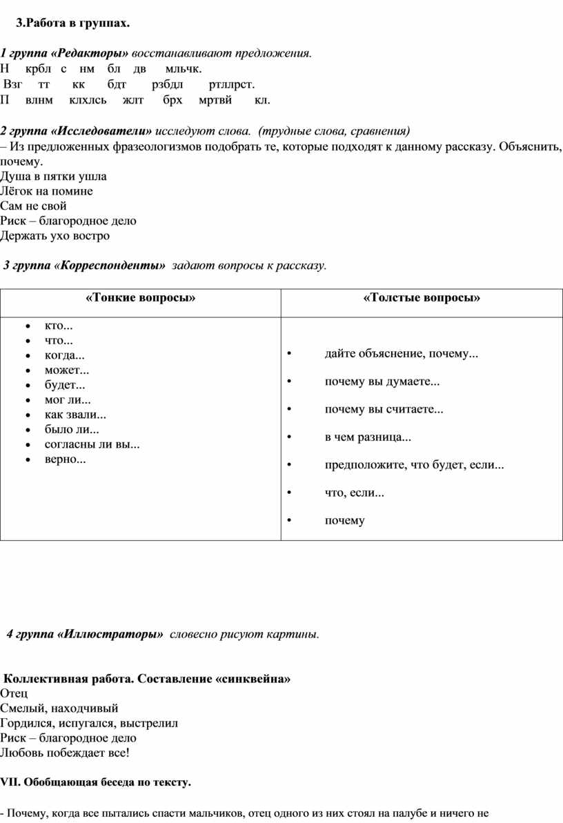 3 группа «Корреспонденты» задают вопросы к рассказу.