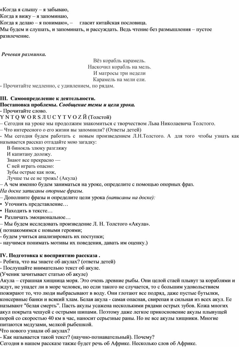 – Мы будем исследовать произведение Л. Н. Толстого «Акула».