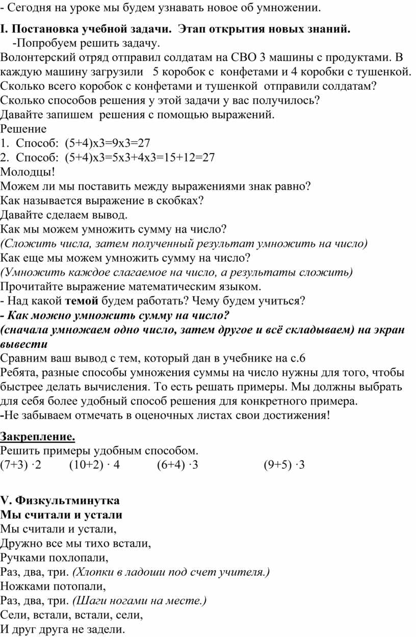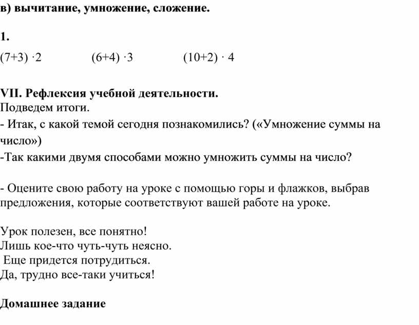 - Итак, с какой темой сегодня познакомились? («Умножение суммы на число»)