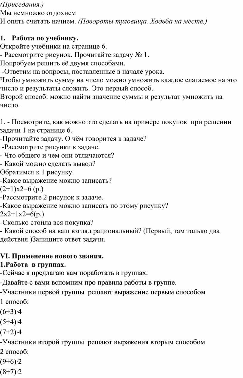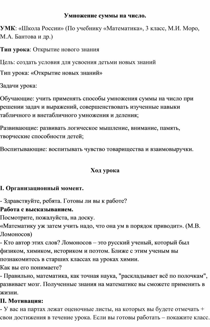 Обучающие: учить применять способы умножения суммы на число при решении задач и выражений, совершенствовать изученные навыки табличного и внетабличного умножения и деления;