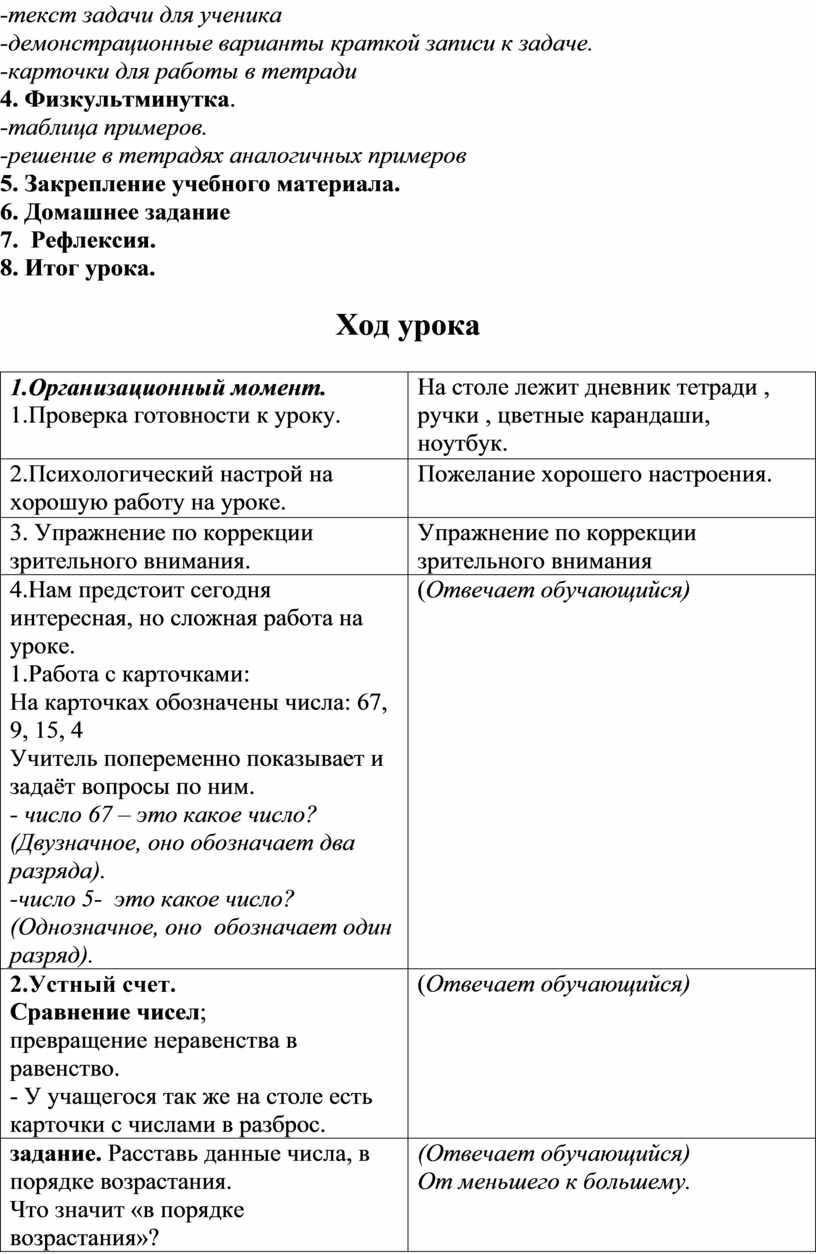 Урок имел коррекционную направленность, что выражалось в использовании специальных упражнений по развитию высших психических функций учащихся. В уроке использовались упражнения на развитие памяти, внимания, слухового и зрительного восприятия