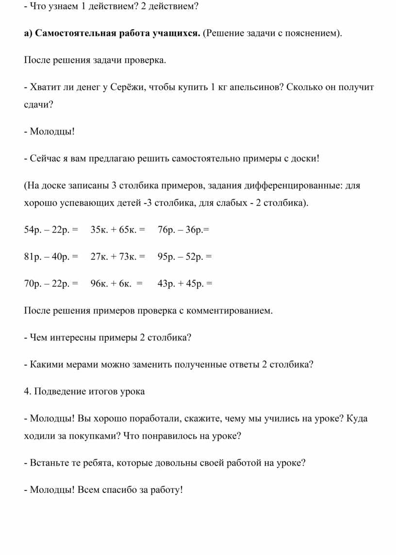 - Молодцы! Вы хорошо поработали, скажите, чему мы учились на уроке? Куда ходили за покупками? Что понравилось на уроке?
