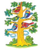 Задание 3. Посчитайте птичек на дереве. Обведите птичку, которая сидит ближе к земле, красным карандашом, а зеленым – птичку, которая сидит дальше от земли.