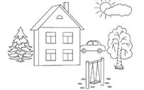 Задание 4. Заштрихуй дерево, которое находится ближе к дому, зеленым карандашом, а дерево, которое растет дальше от дома, желтым карандашом.