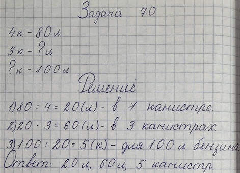 — Что мы должны найти сначала? (Сколько литров в одной канистре.)