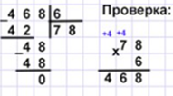 — Ребята, внизу страницы, под чертой вы можете видеть задания для самопроверки. Сейчас 1 вариант берет пример 672:7, а 2 вариант – 392:8.