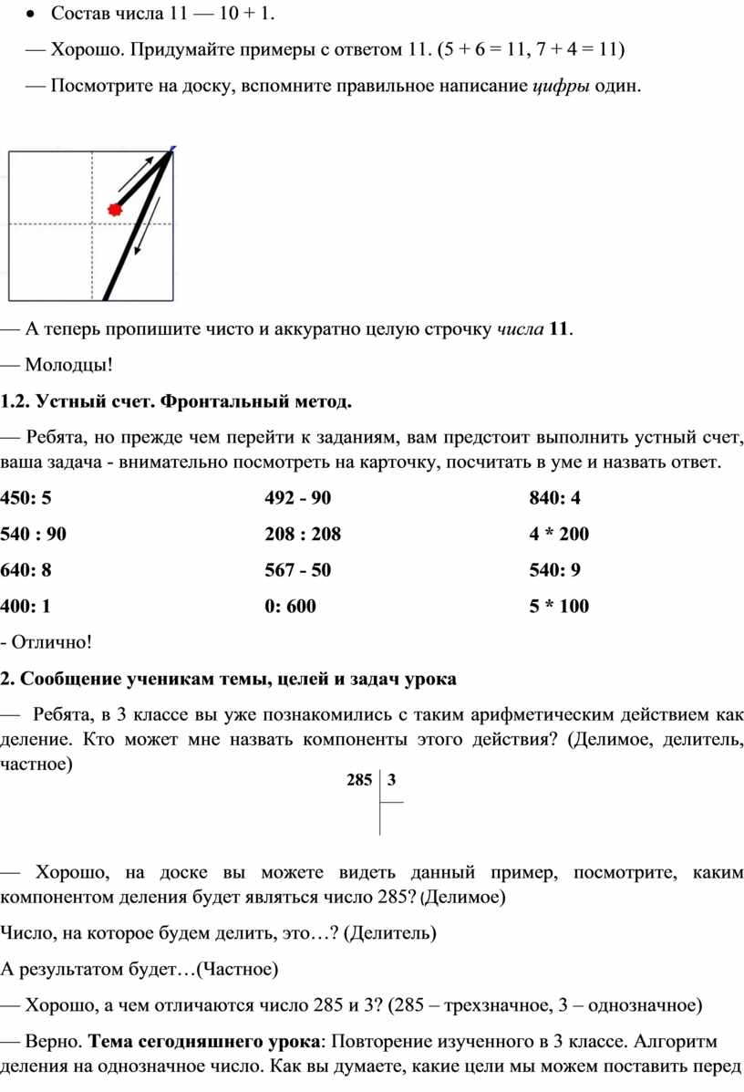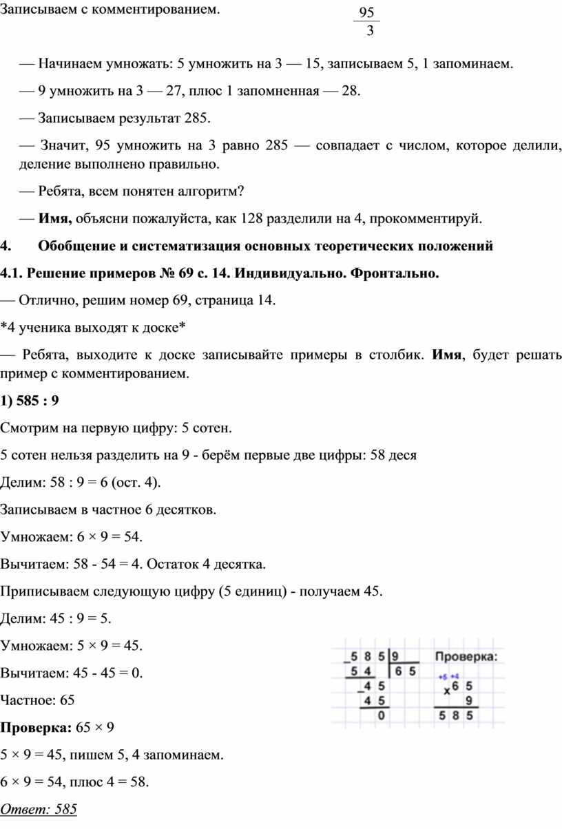 3.1. Алгоритм деления на однозначное число на примере 285:3. Фронтально.