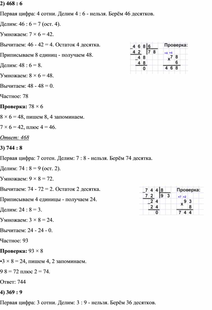 — Отлично! Во всех случаях остаток получился ноль, значит деление выполнено без остатка. Проверка умножением показала, что частные верные, значит все деления выполнены правильно.