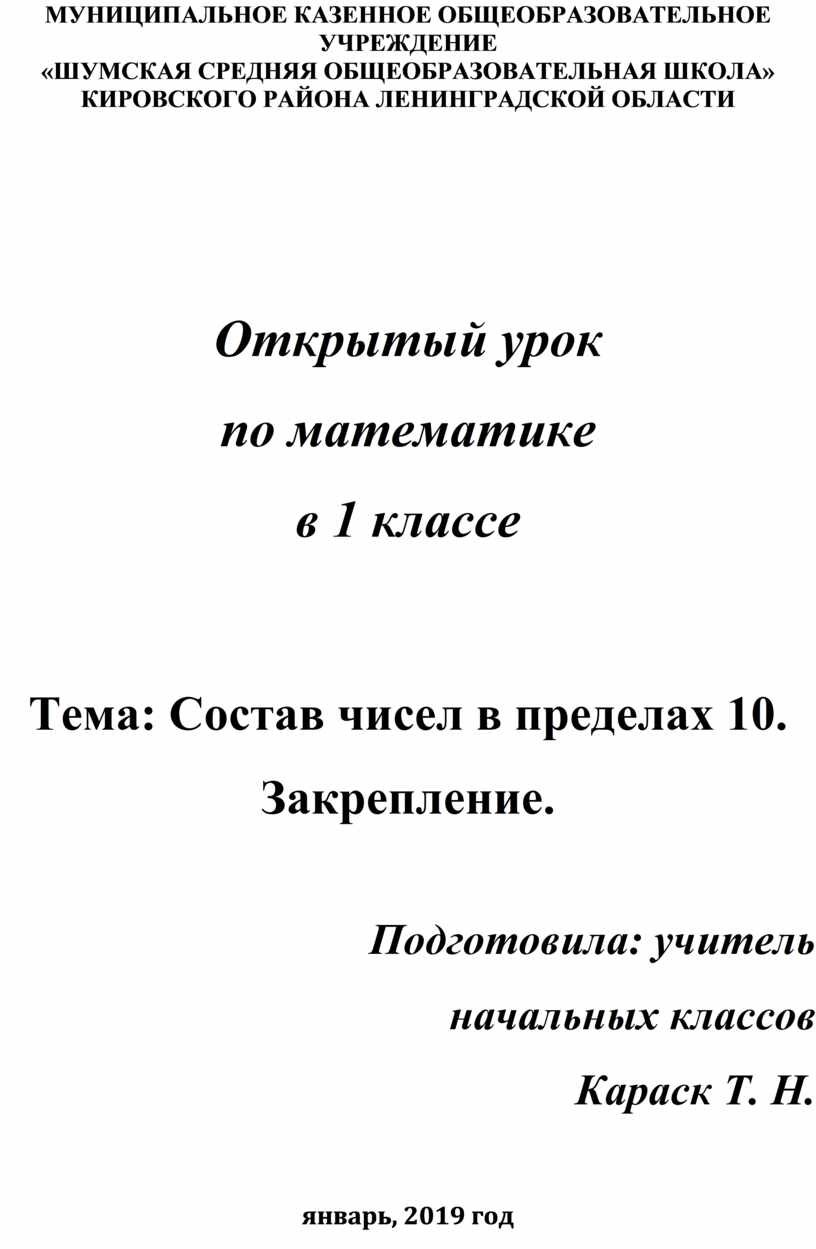 «ШУМСКАЯ СРЕДНЯЯ ОБЩЕОБРАЗОВАТЕЛЬНАЯ ШКОЛА» КИРОВСКОГО РАЙОНА ЛЕНИНГРАДСКОЙ ОБЛАСТИ