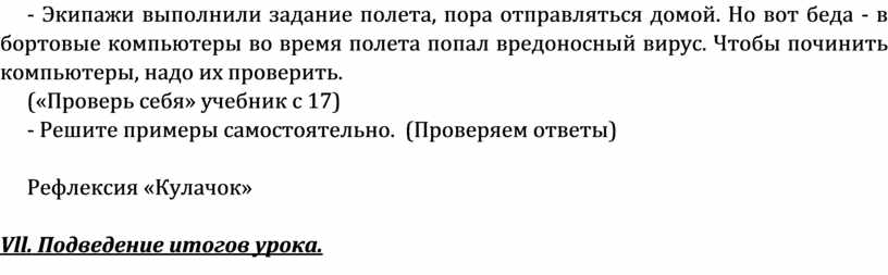 - Экипажи выполнили задание полета, пора отправляться домой. Но вот беда - в бортовые компьютеры во время полета попал вредоносный вирус. Чтобы починить компьютеры, надо их проверить.