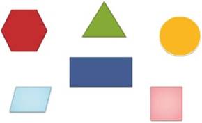 - Посмотрите на доску и назовите фигуры, которые вы на ней видите (у учителя на доске круг, квадрат, прямоугольник, треугольник и шестиугольник).