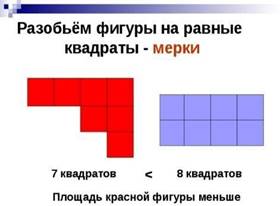 - Попробуем подобрать мерки для измерения площади, измерим этими мерками