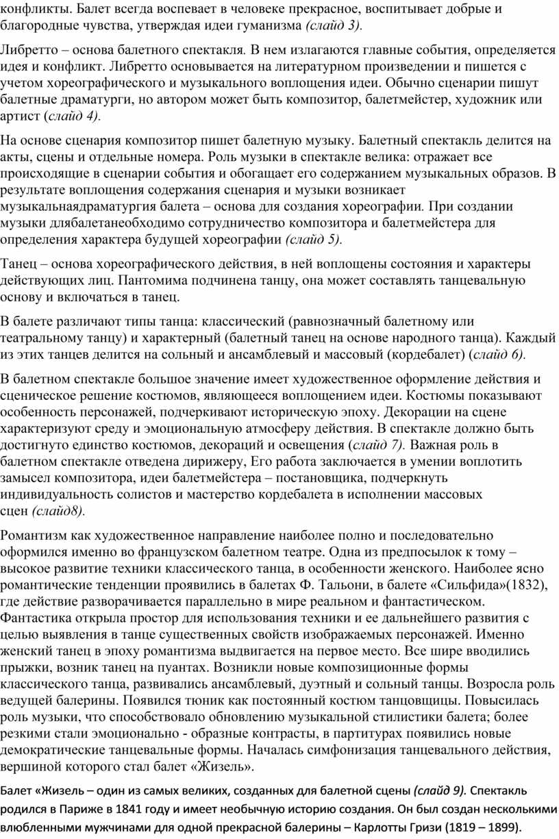 Конспект урока по музыке: «В музыкальном театре. Балет» . 7 класс.