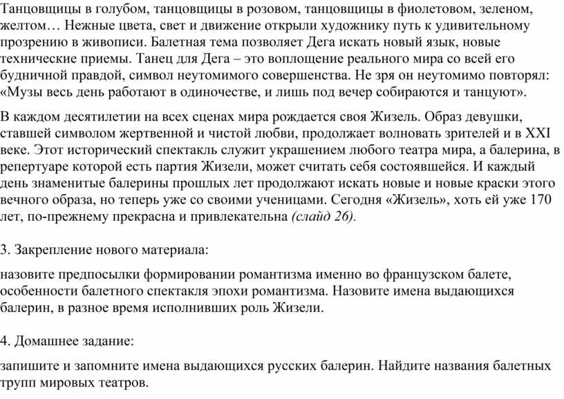 назовите предпосылки формировании романтизма именно во французском балете, особенности балетного спектакля эпохи романтизма. Назовите имена выдающихся балерин, в разное время исполнивших роль Жизели.