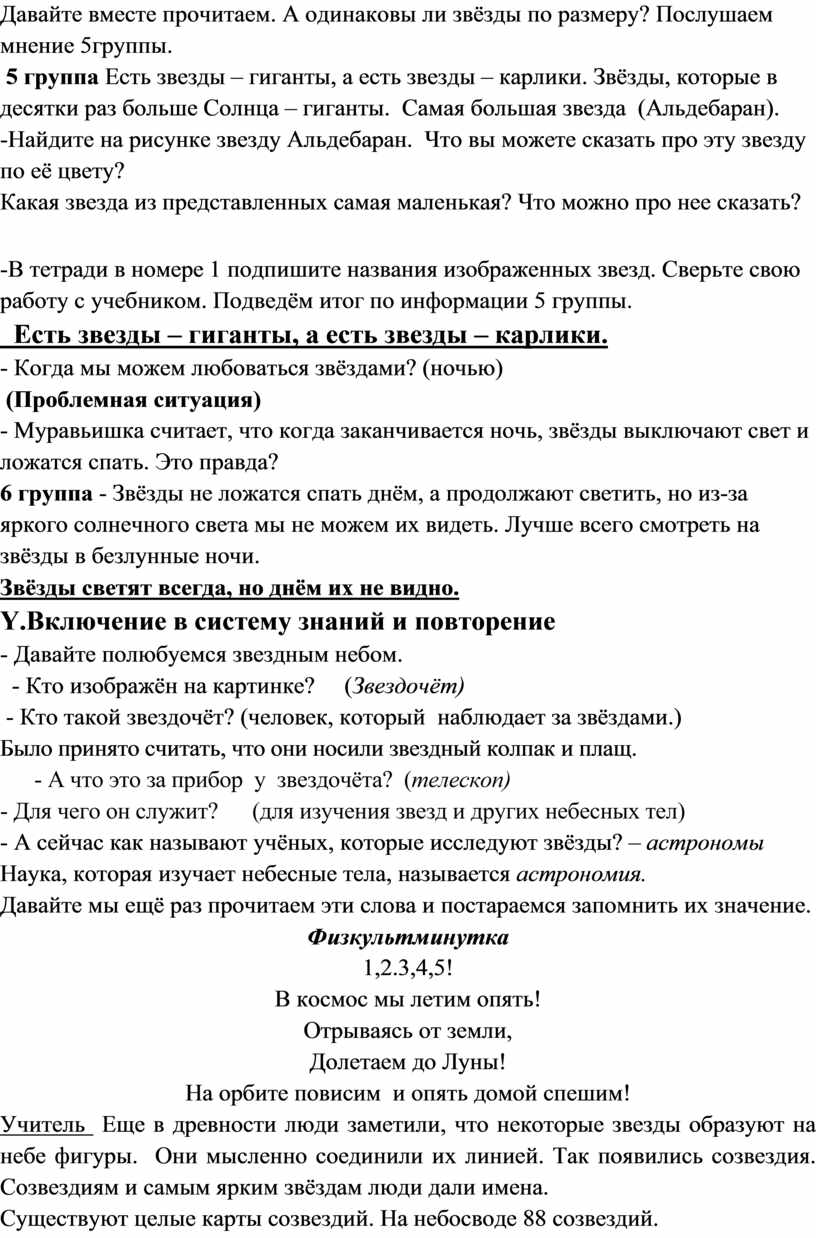 Давайте вместе прочитаем. А одинаковы ли звёзды по размеру? Послушаем мнение 5группы.
