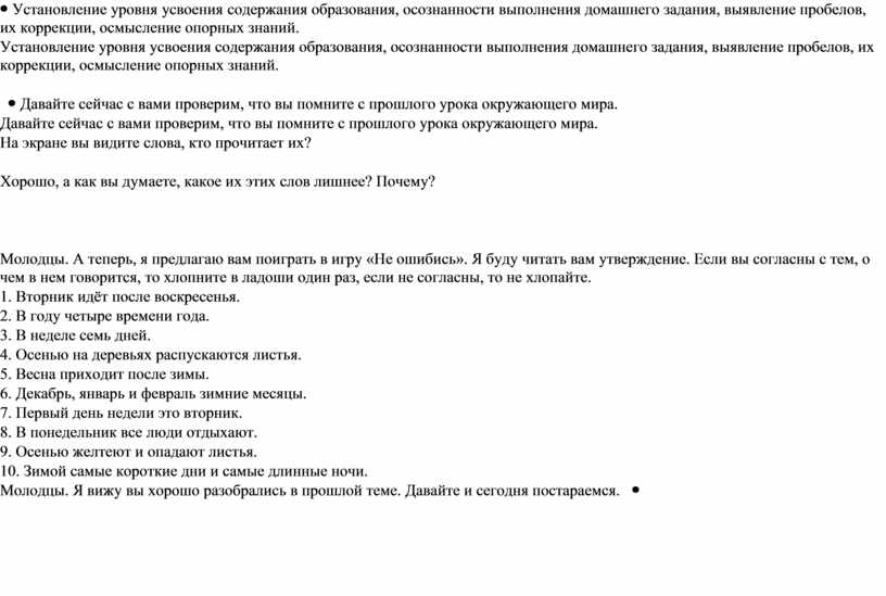 Установление уровня усвоения содержания образования, осознанности выполнения домашнего задания, выявление пробелов, их коррекции, осмысление опорных знаний.