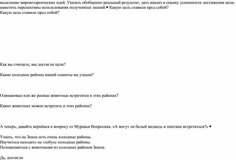 1.Воспитывать интерес к географическим областям и животному миру Земли.