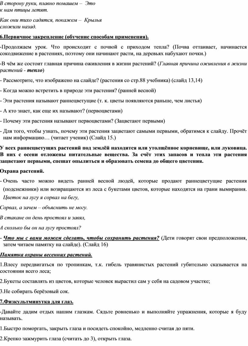 Памятка охраны весенних растений.