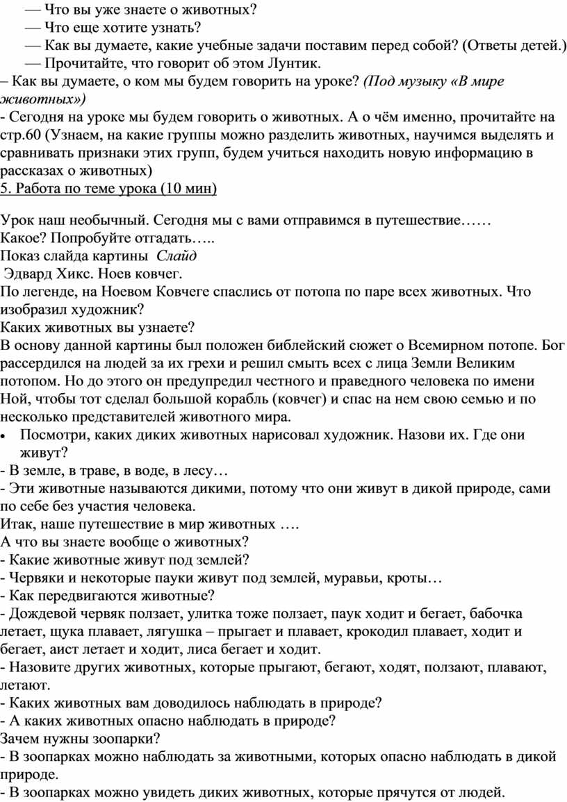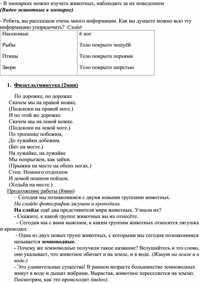 Цели: обобщить знания о животных; научить разделять животных на группы (птицы, рыбы, звери, насекомые); показать зависимость строения животных от их образа жизни.