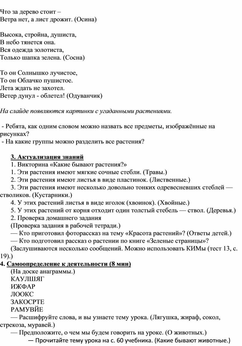Оборудование: анаграммы на доске, картинки с изображением животных разных групп, фотографии, слайды, видеофрагменты, школьные словарики «Животные России», «Птицы России»; у учащихся — стрелки из цветной бумаги, цветные карандаши.