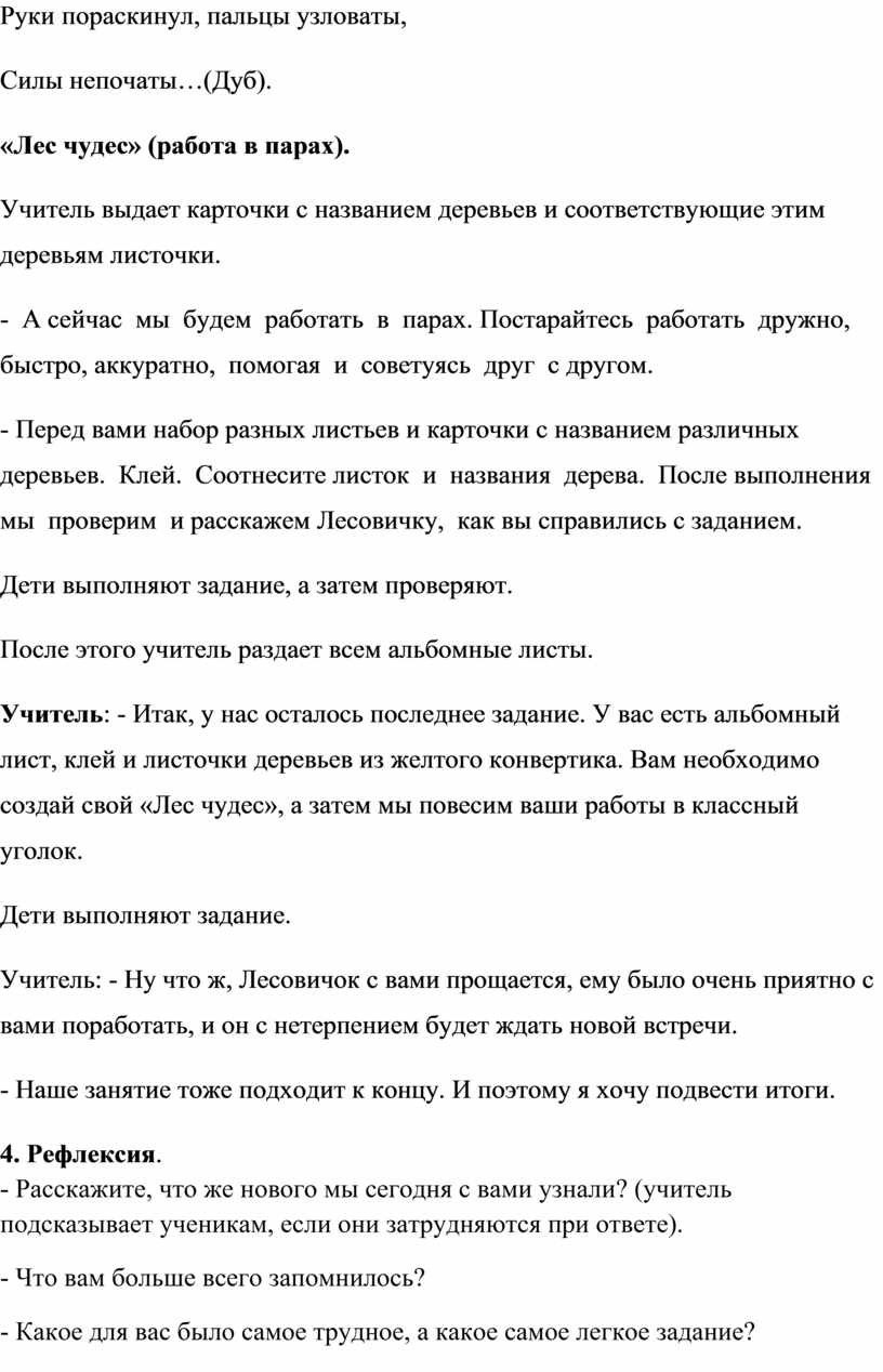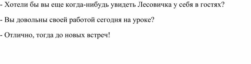 Учитель: - Ну что ж, Лесовичок с вами прощается, ему было очень приятно с вами поработать, и он с нетерпением будет ждать новой встречи.
