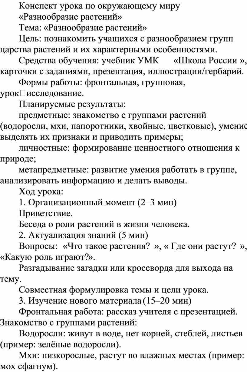 Вопросы: «Что такое растения?», «Где они растут?», «Какую роль играют?».