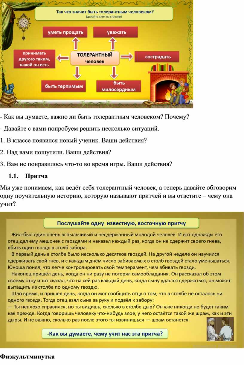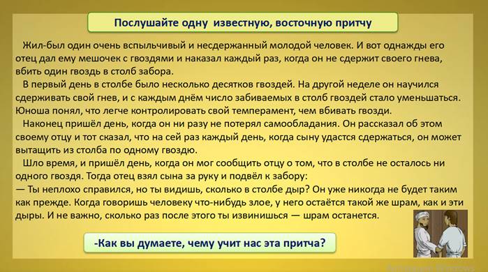 Мы уже понимаем, как ведёт себя толерантный человек, а теперь давайте обговорим одну поучительную историю, которую называют притчей и вы ответите – чему она учит?