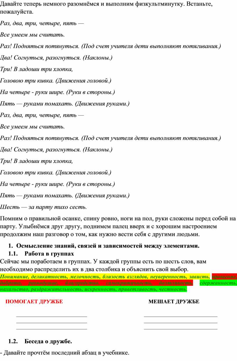 Давайте теперь немного разомнёмся и выполним физкультминутку. Встаньте, пожалуйста.
