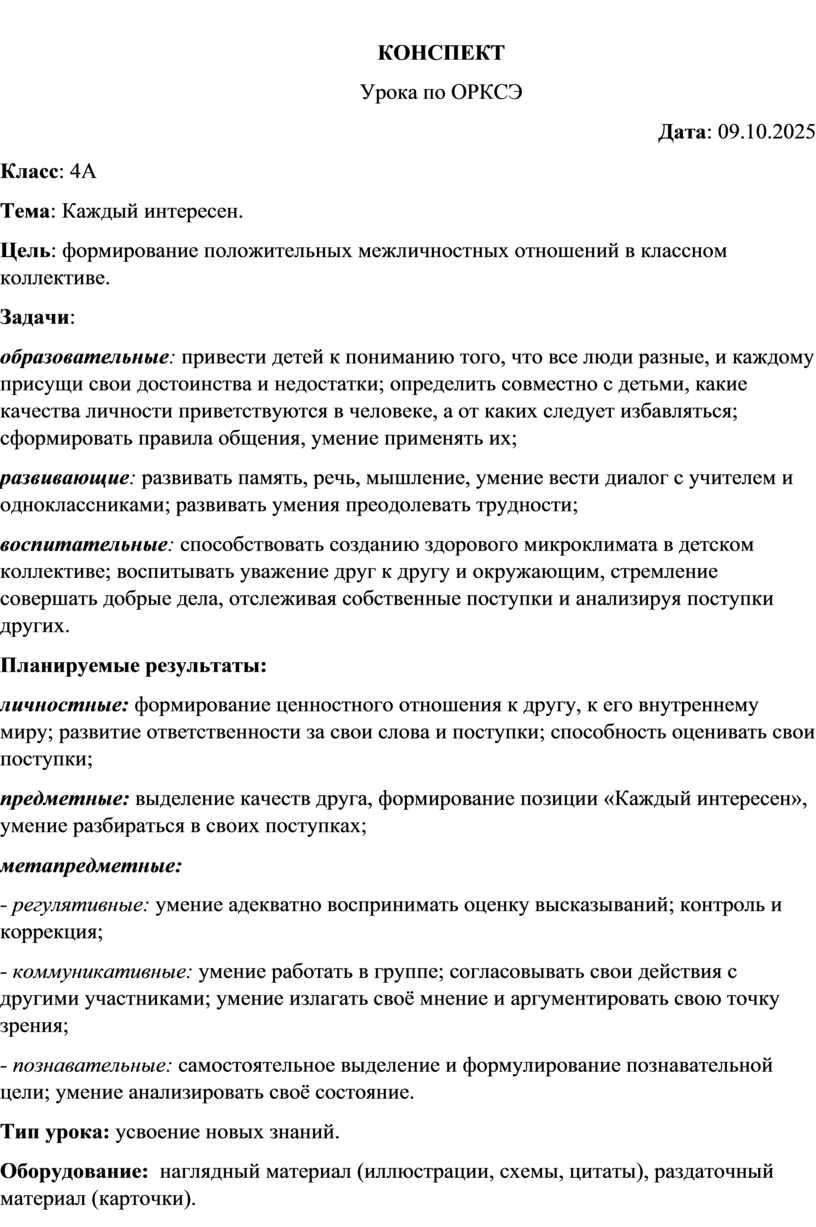 предметные: выделение качеств друга, формирование позиции «Каждый интересен», умение разбираться в своих поступках;