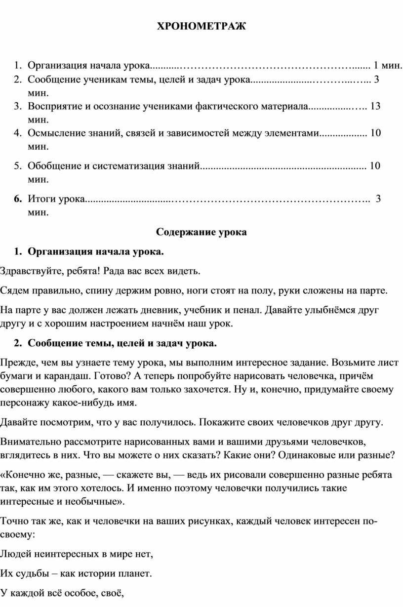 Содержание урока