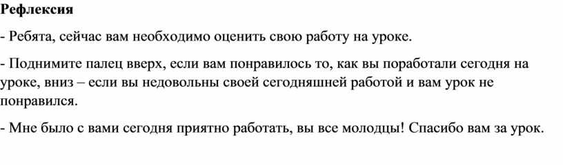 - Поднимите палец вверх, если вам понравилось то, как вы поработали сегодня на уроке, вниз – если вы недовольны своей сегодняшней работой и вам урок не понравился.