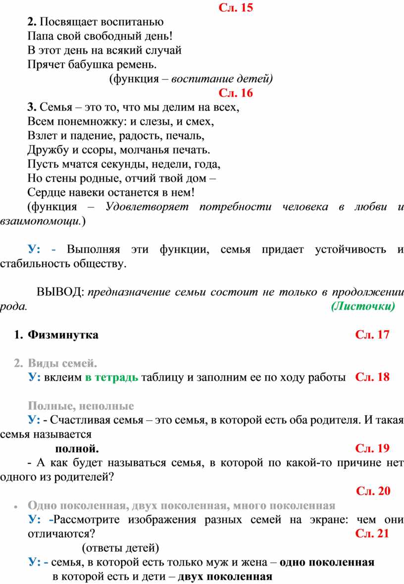 У: -Рассмотрите изображения разных семей на экране: чем они отличаются? Сл. 21