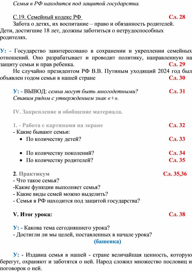 У: - ВЫВОД: семьи могут быть многодетными? Сл. 31