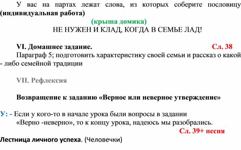 ВЫВОД: Роль семьи в жизни человека: Сл. 13