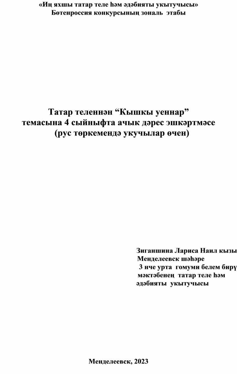 Минем исемем Лариса Наиловна. Бүгенге татар теле дәресен мин алып барам.