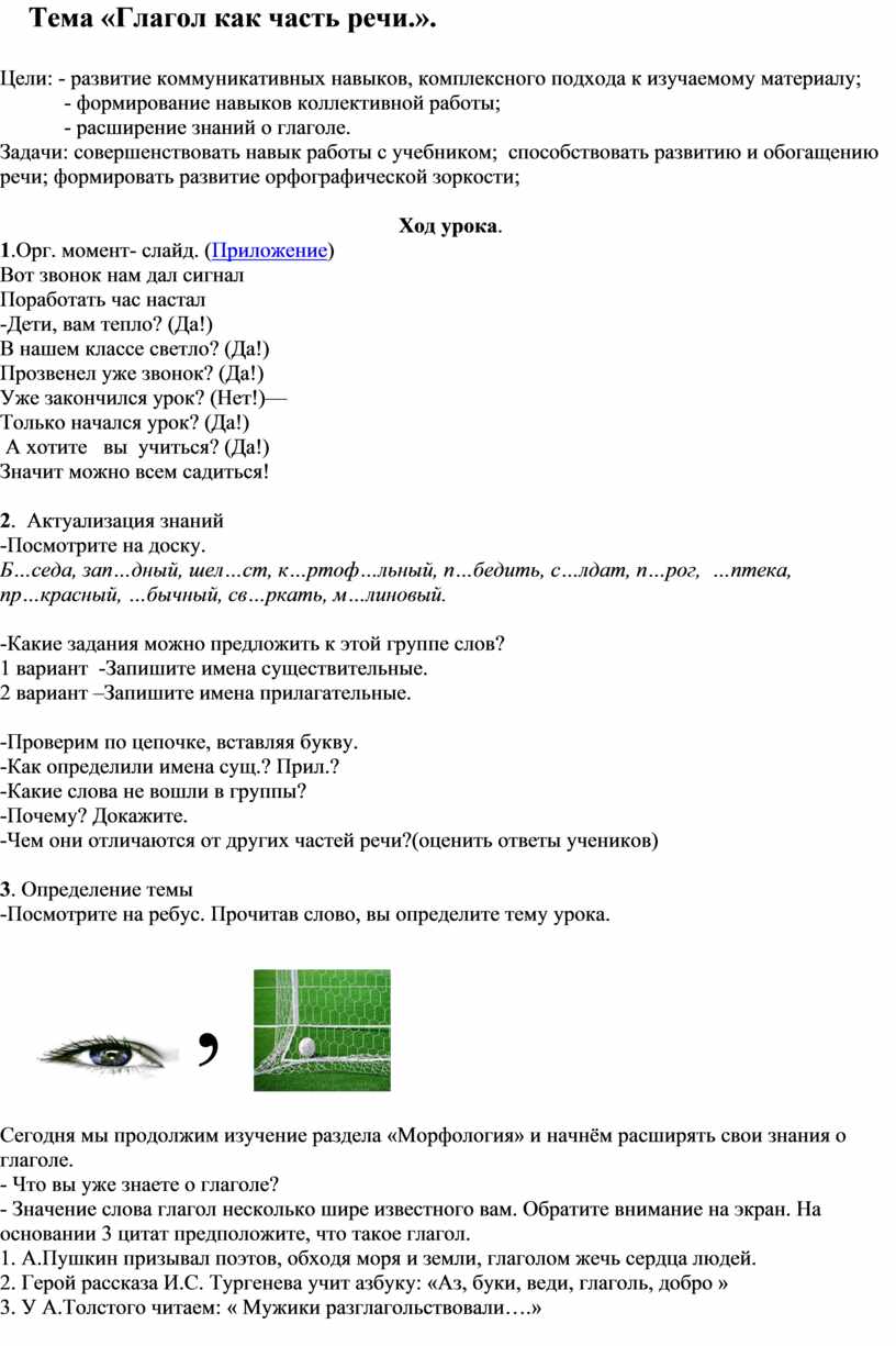 - Итак, глагол – это слово…, ( сравнить своё высказывание со сведениями из истории возникновения слова + учебник стр. 63)
