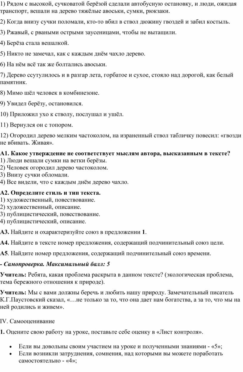 - Самопроверка. (ставят по 1 баллу). Максимальный: 5 баллов