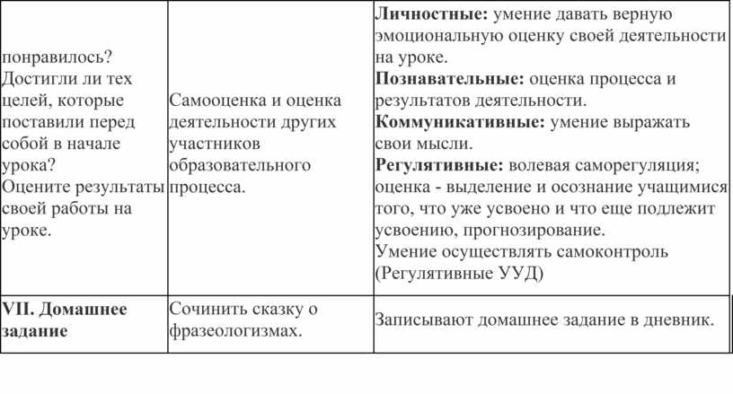 результата; оценка - выделение и осознание учащимся того, что уже усвоено и