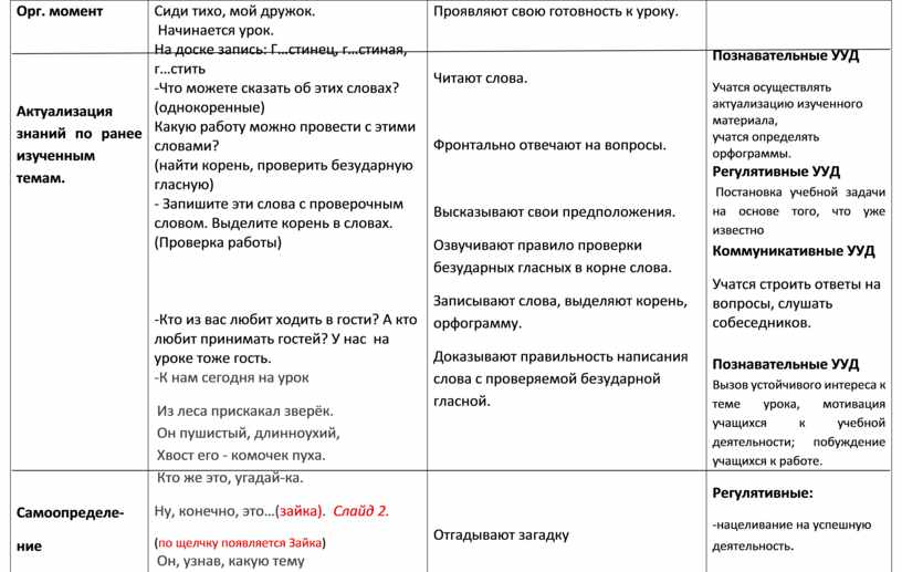Познавательные УУД Учатся осуществлять актуализацию изученного материала, учатся определять орфограммы. Регулятивные УУД Постановка учебной задачи на основе того, что уже известно Коммуникативные УУД Учатся строить ответы на вопросы, слушать собеседников.