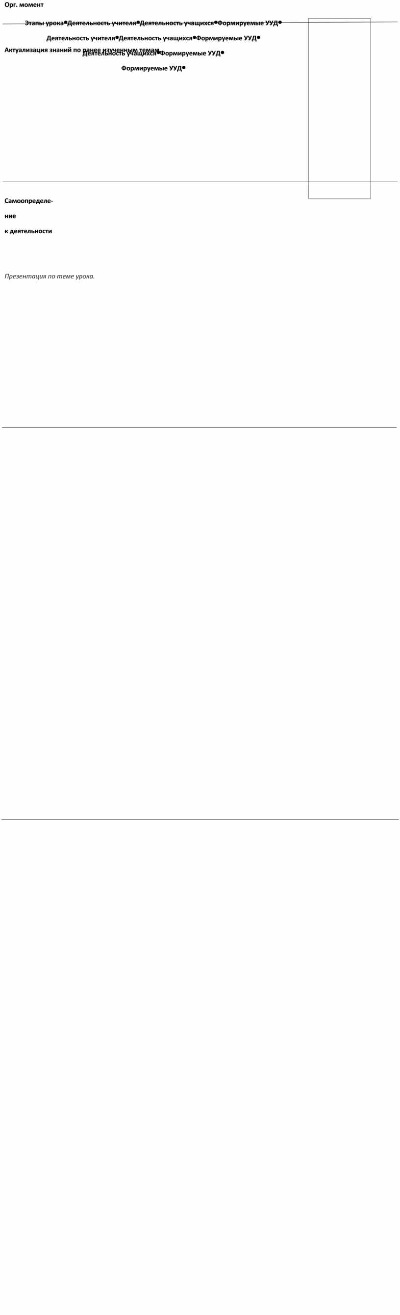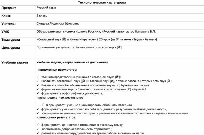 Технологическая карта урока