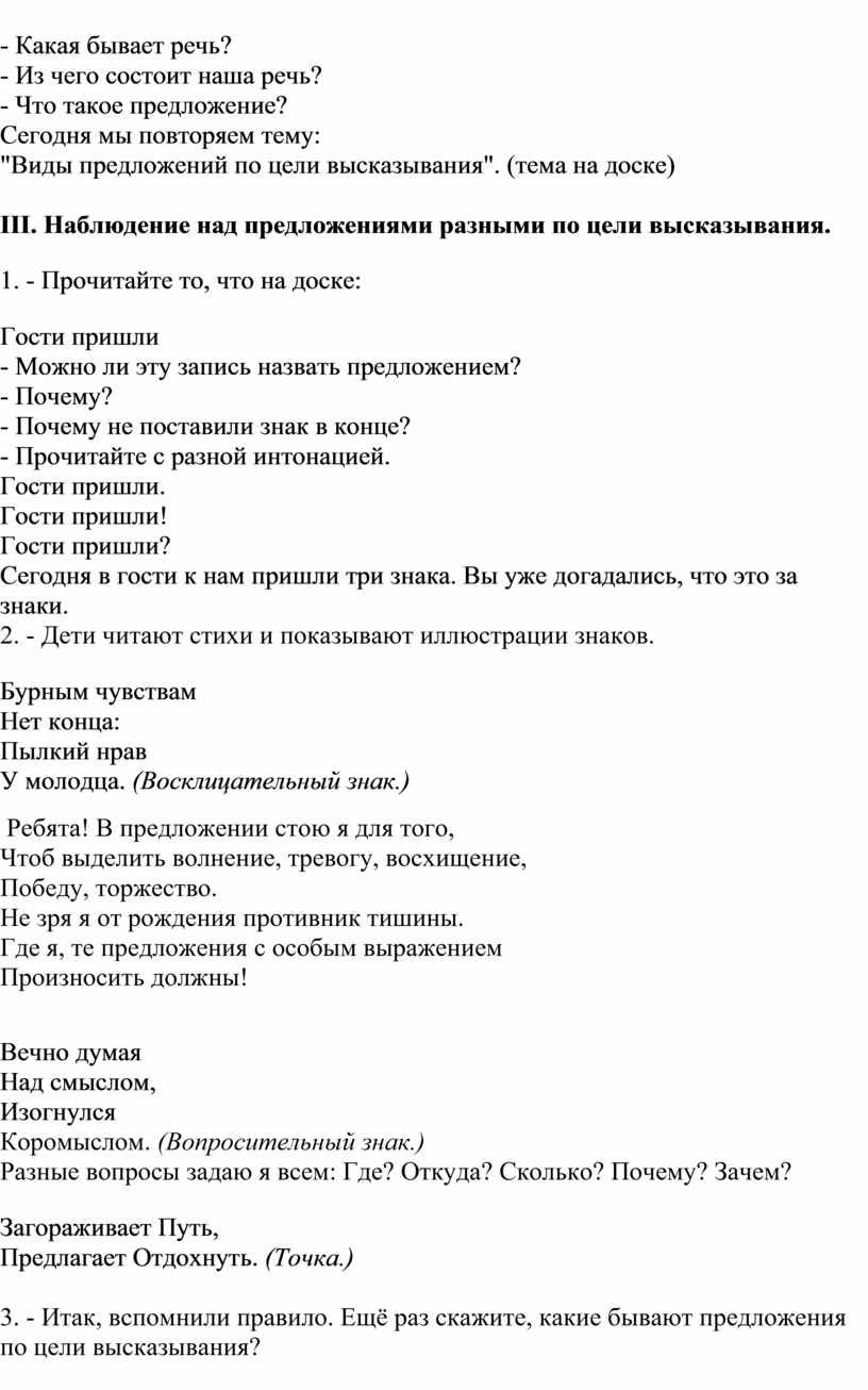 3. - Итак, вспомнили правило. Ещё раз скажите, какие бывают предложения по цели высказывания?