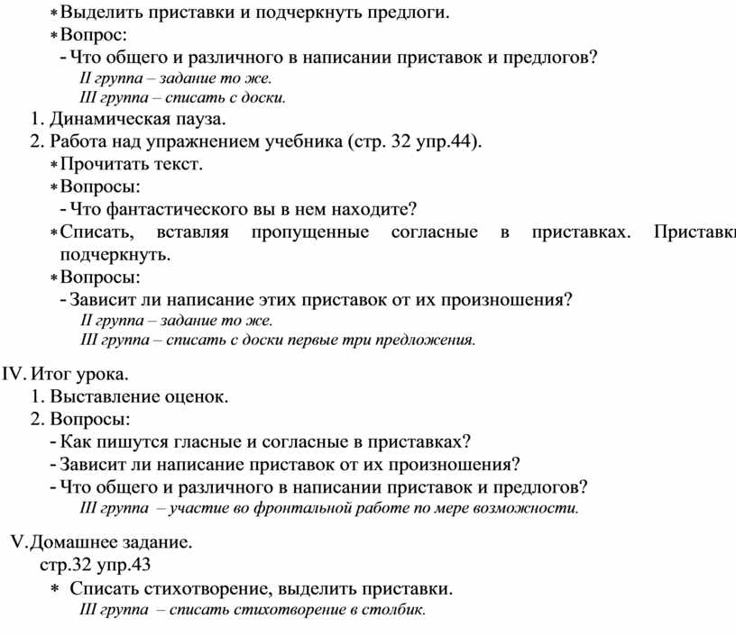 III группа – списать первые две строки, выделить приставки.