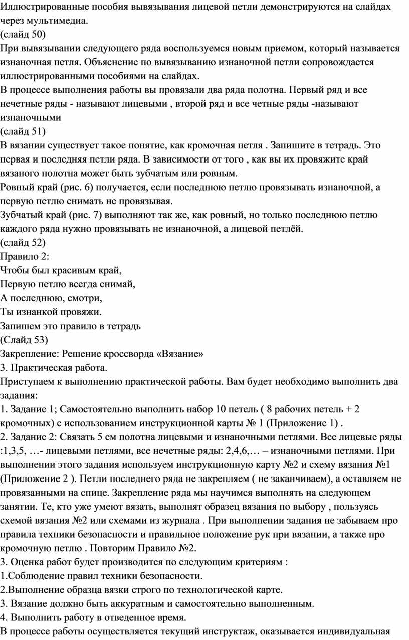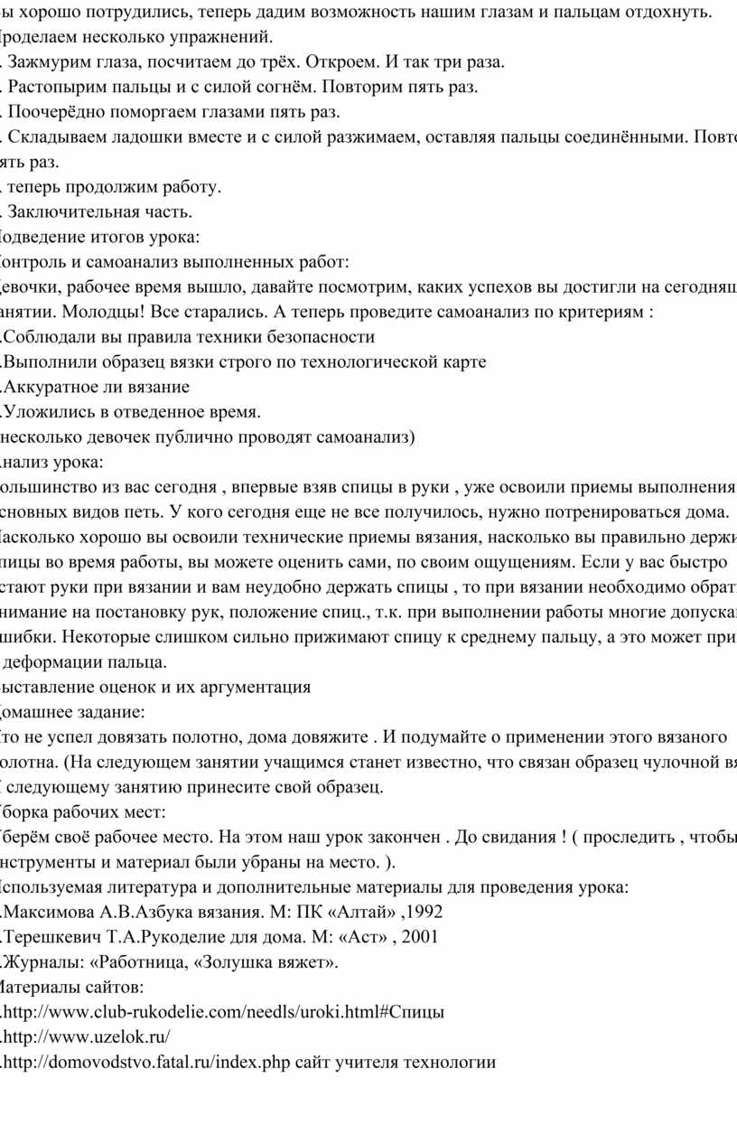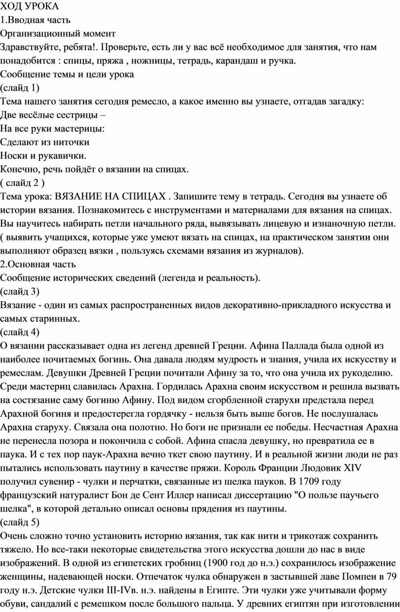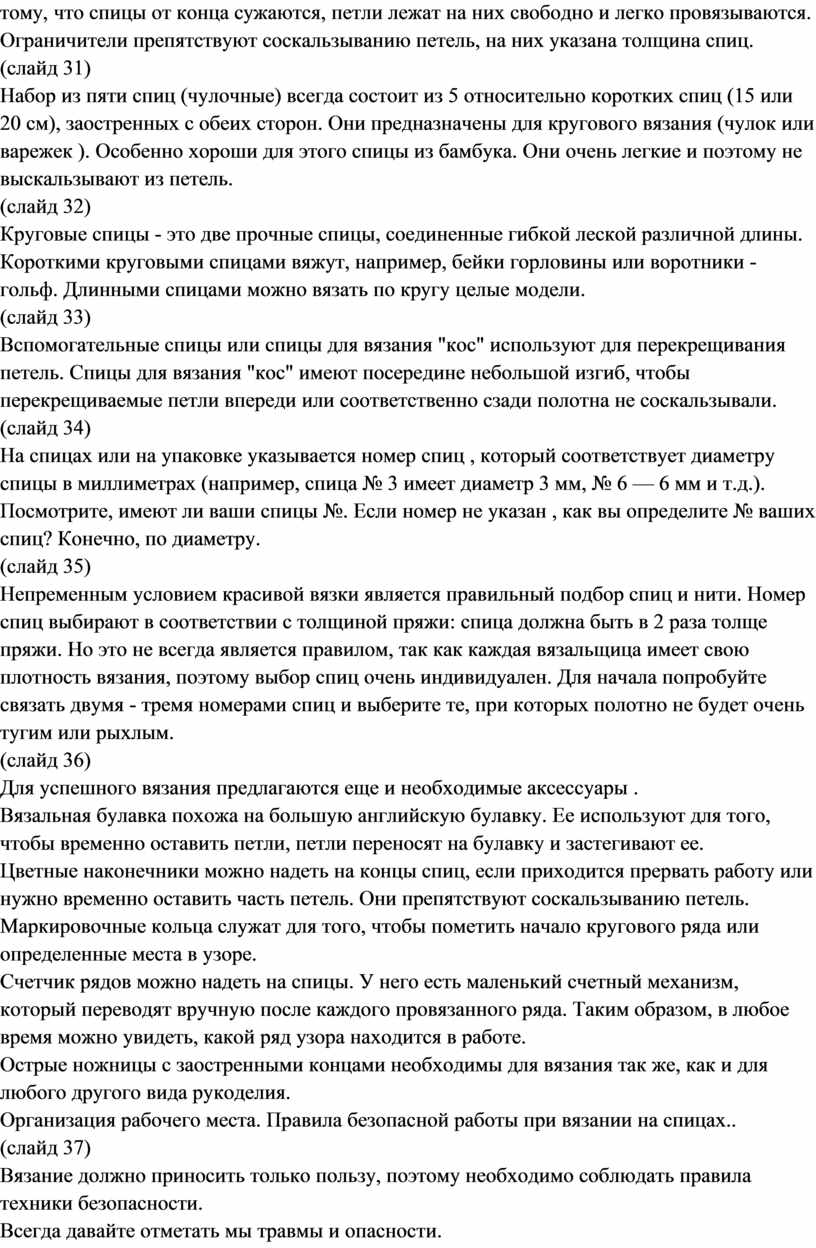 Вязание на спицах / Категория: Технология | Труд » 9 класс » |