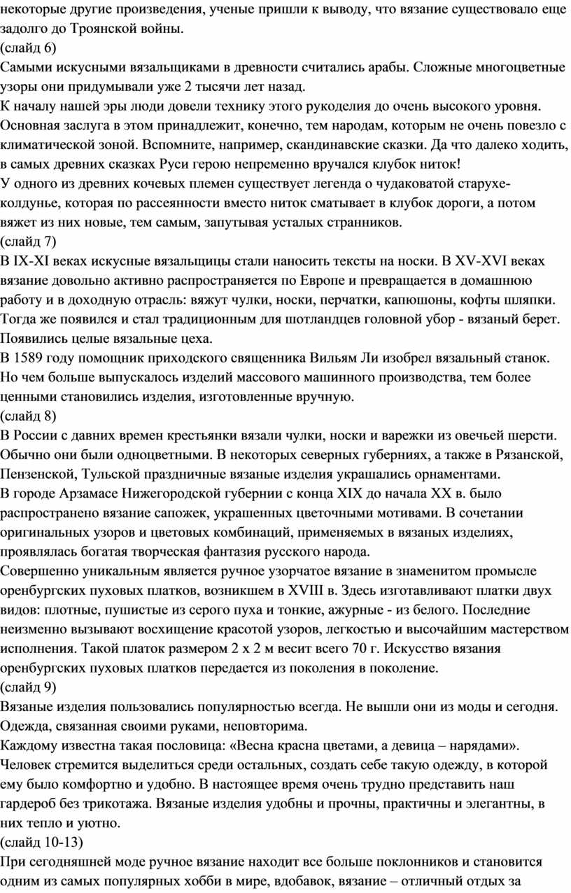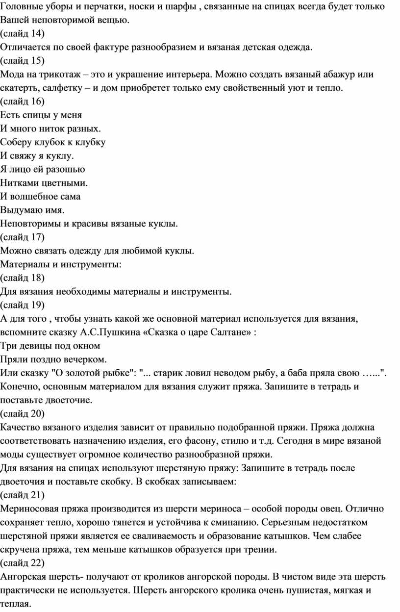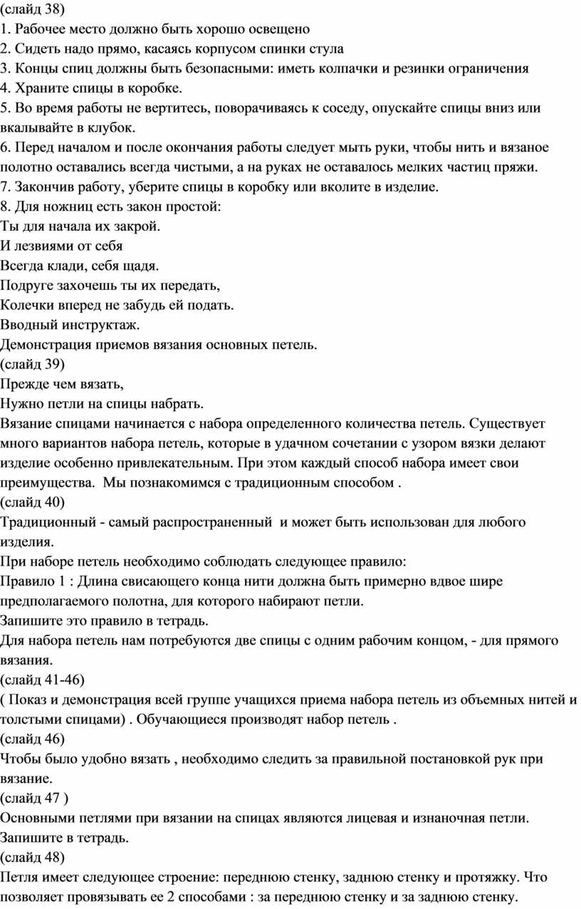 Вязание на спицах / Категория: Технология | Труд » 9 класс » |