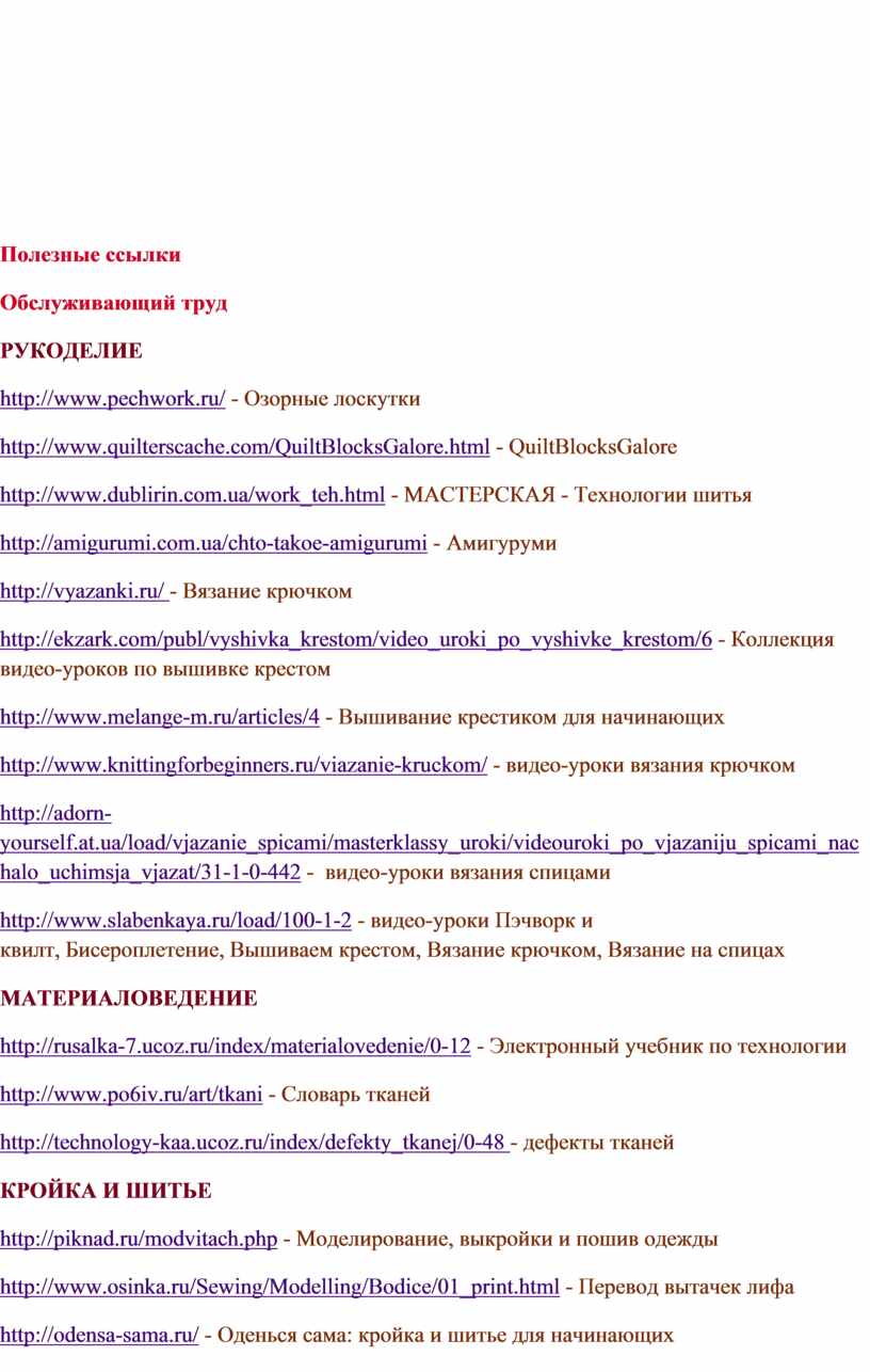 http://rusalka-7.ucoz.ru/index/materialovedenie/0-12 - Электронный учебник по технологии