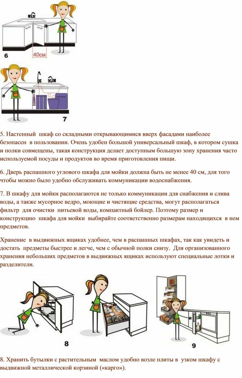 • зона хранения (холодильник, шкафы с бакалеей и другими продуктами);