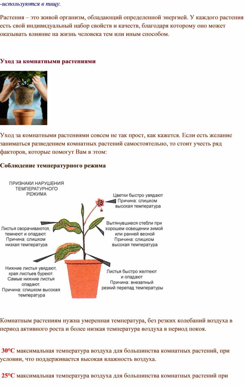 температура воздуха для большинства комнатных растений при обычной влажности